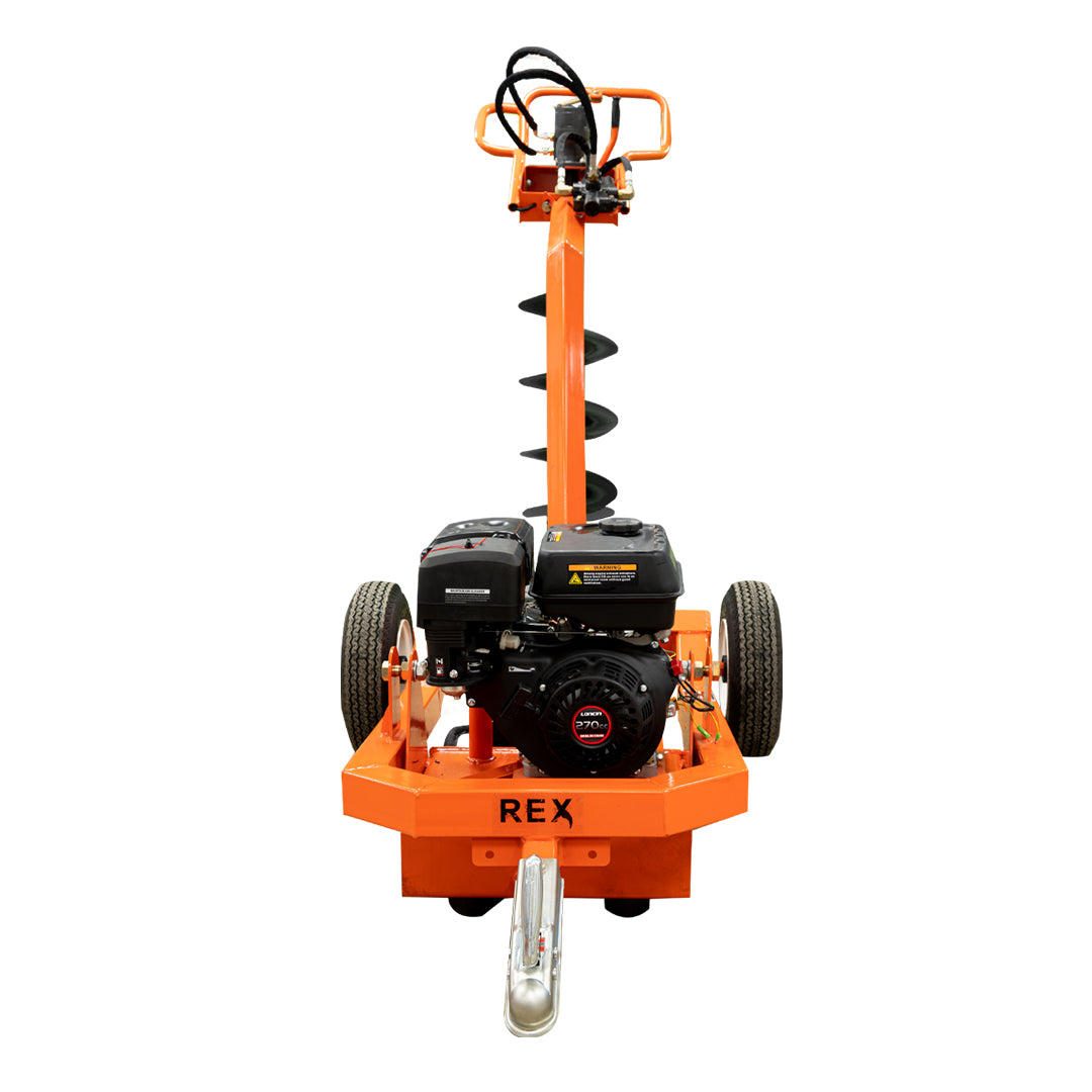 REX Hydraulic Post Hole Digger HD-01. 3,600 in-lbs torque with 5 auger bits included.